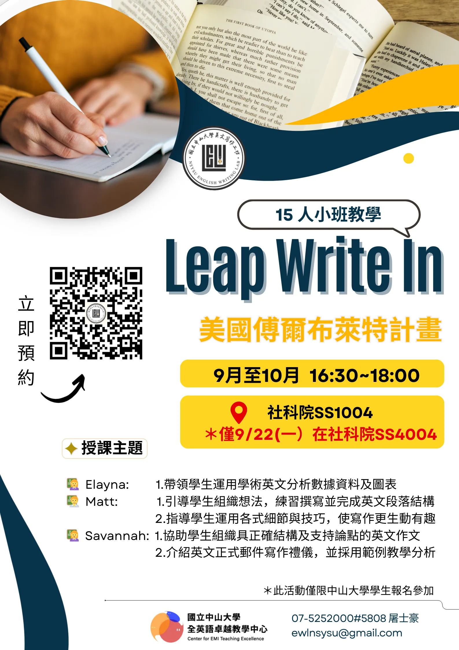 別錯過這個寶貴的學習機會!快來參加我們的「Leap Write In - 美國傅爾布萊特計畫」活動,一同邁向更優秀的英文寫作水平!